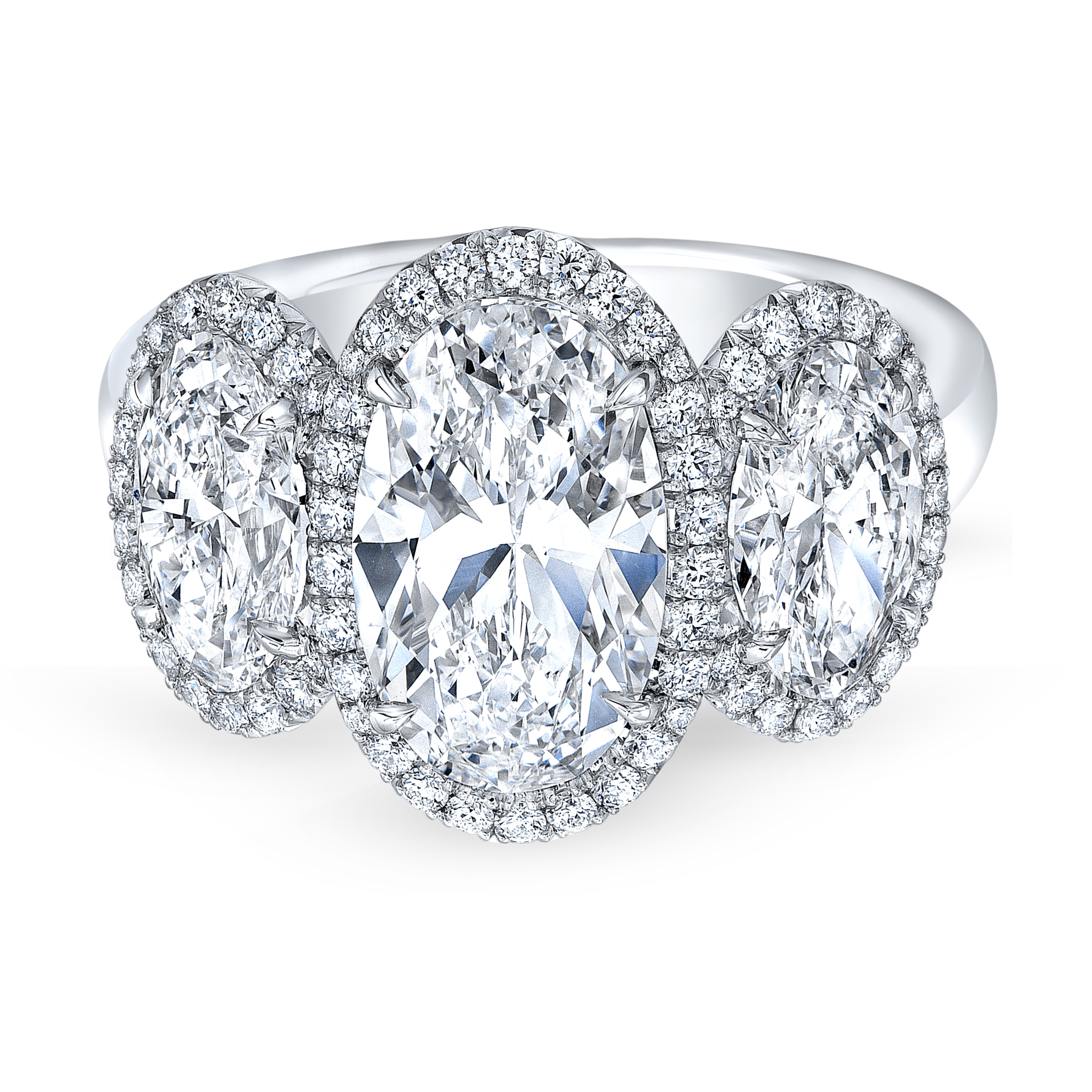Moval Cut Triple Diamond Ring with Pavé Halo | 3.17tw