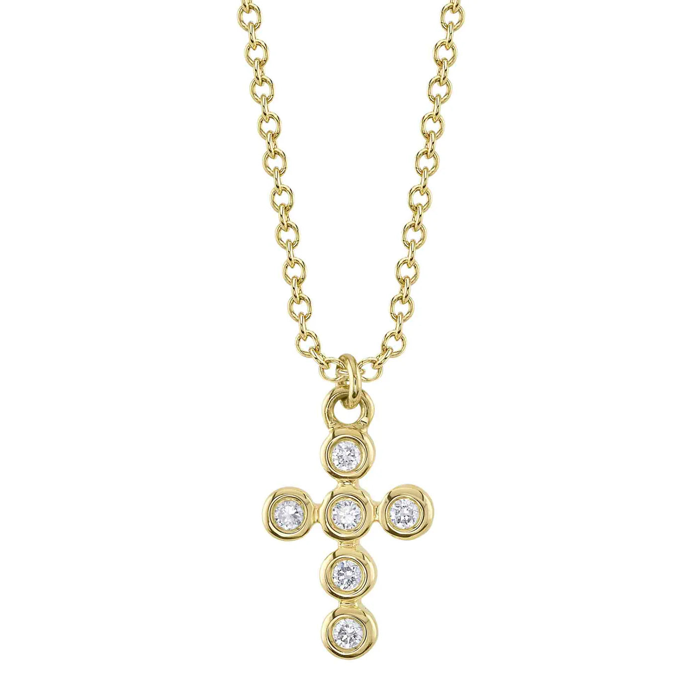 Simple and meaningful, this Bezel Set Diamond Cross Pendant features .08tw of sparkling diamonds set in warm 14K yellow gold. Its refined design offers a modern take on a timeless symbol, perfect for everyday wear or as a heartfelt gift.